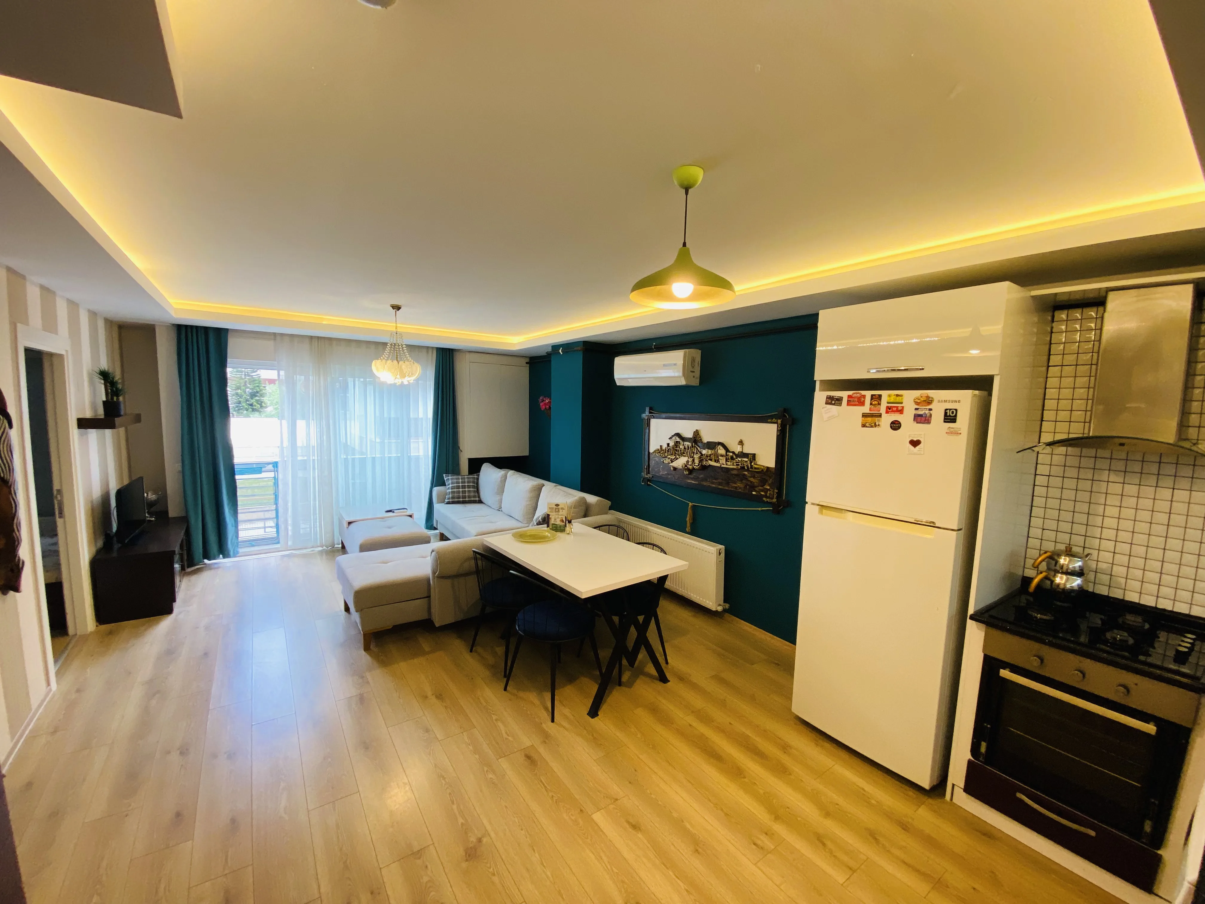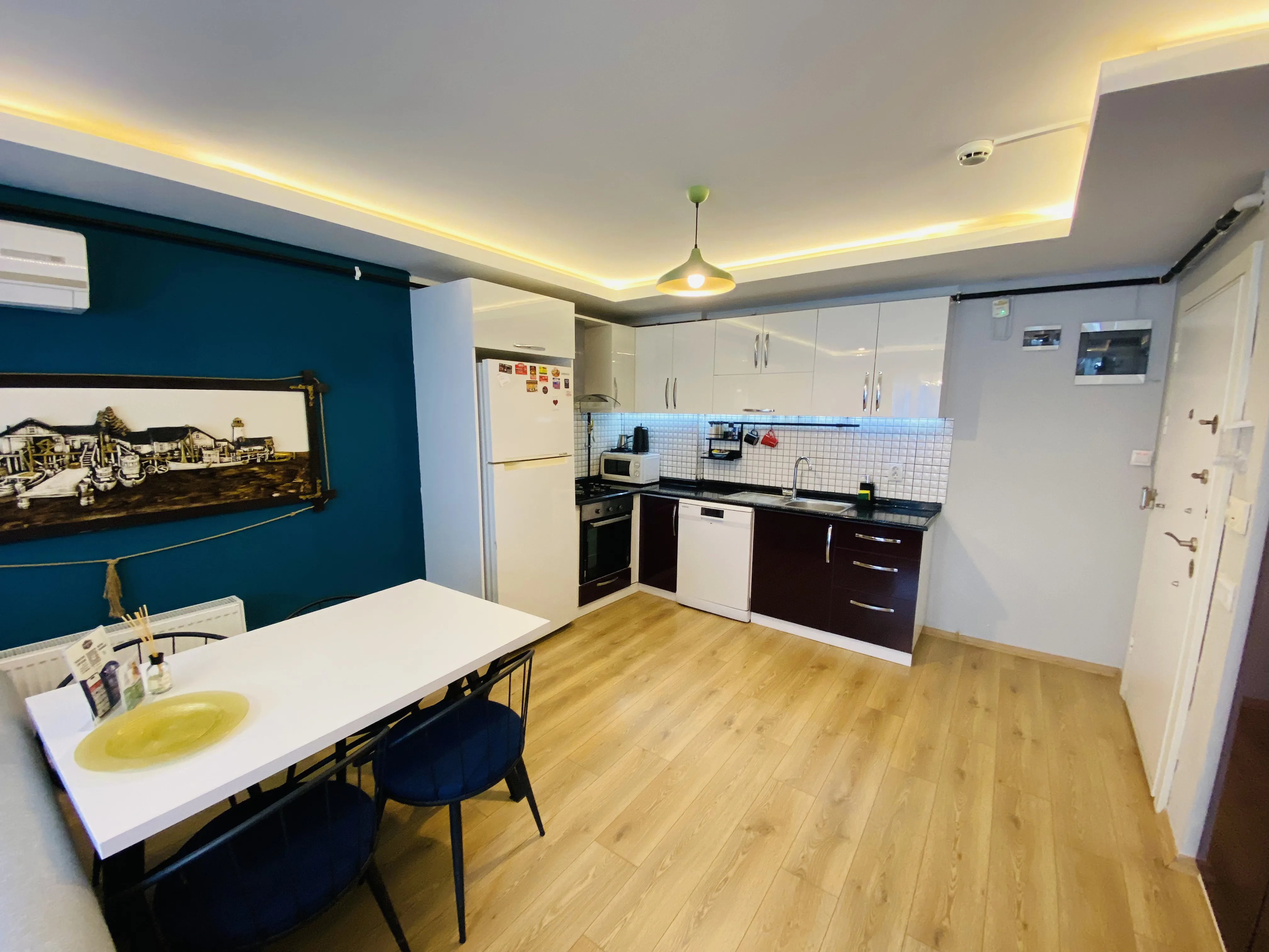 Dairelerimiz ücretsiz wi-fi, klima, doğalgaz, tv, tam donanımlı mutfak, bulaşık - çamaşır makinası, buzdolabı, fırın, mikrodalga, çay/kahve makinası, tost makinası, ütü, kişisel hijyen ürünleri - havlu vb ihtiyaç duyabileceğiniz tüm eşyalara sahiptir.