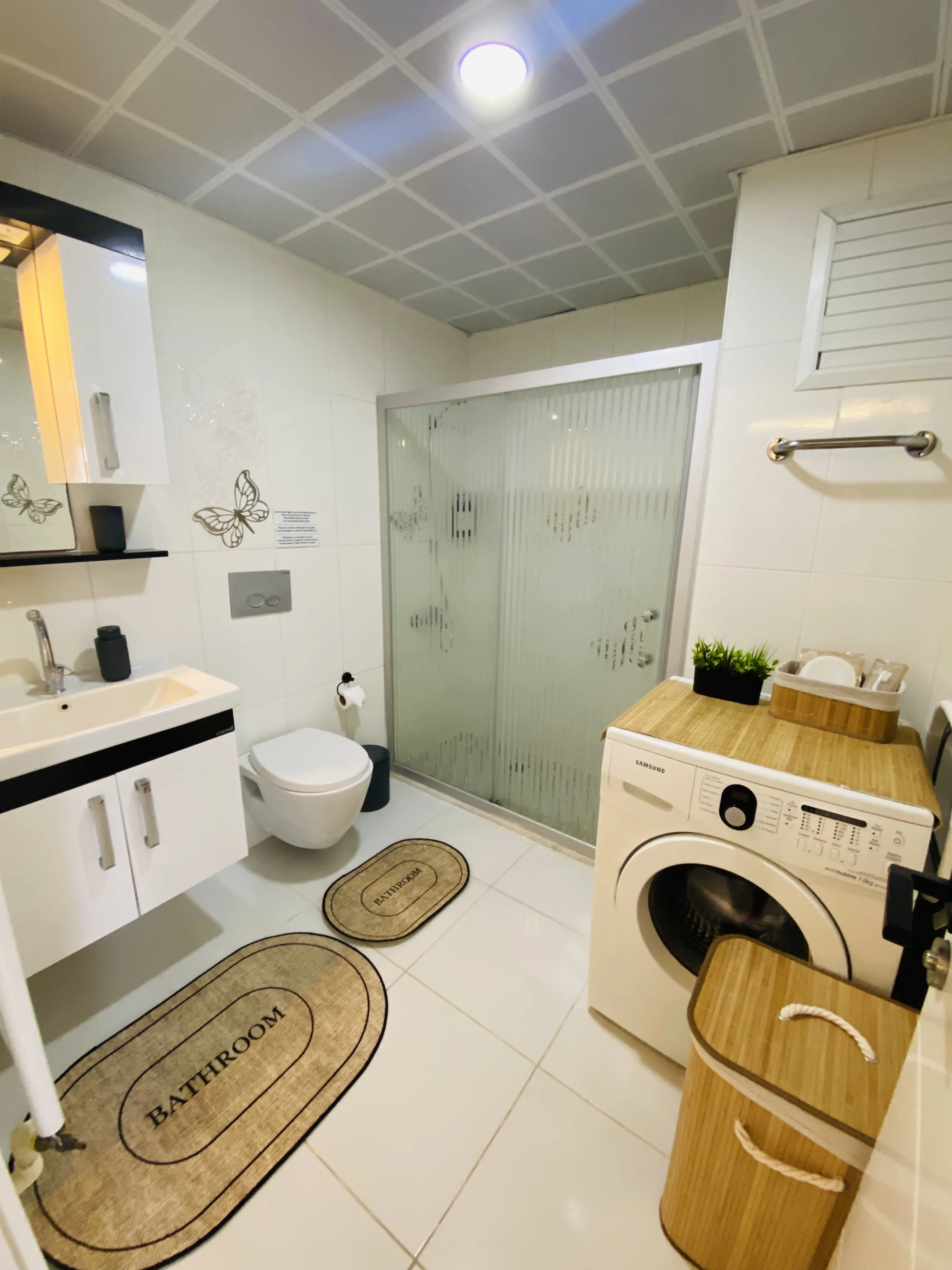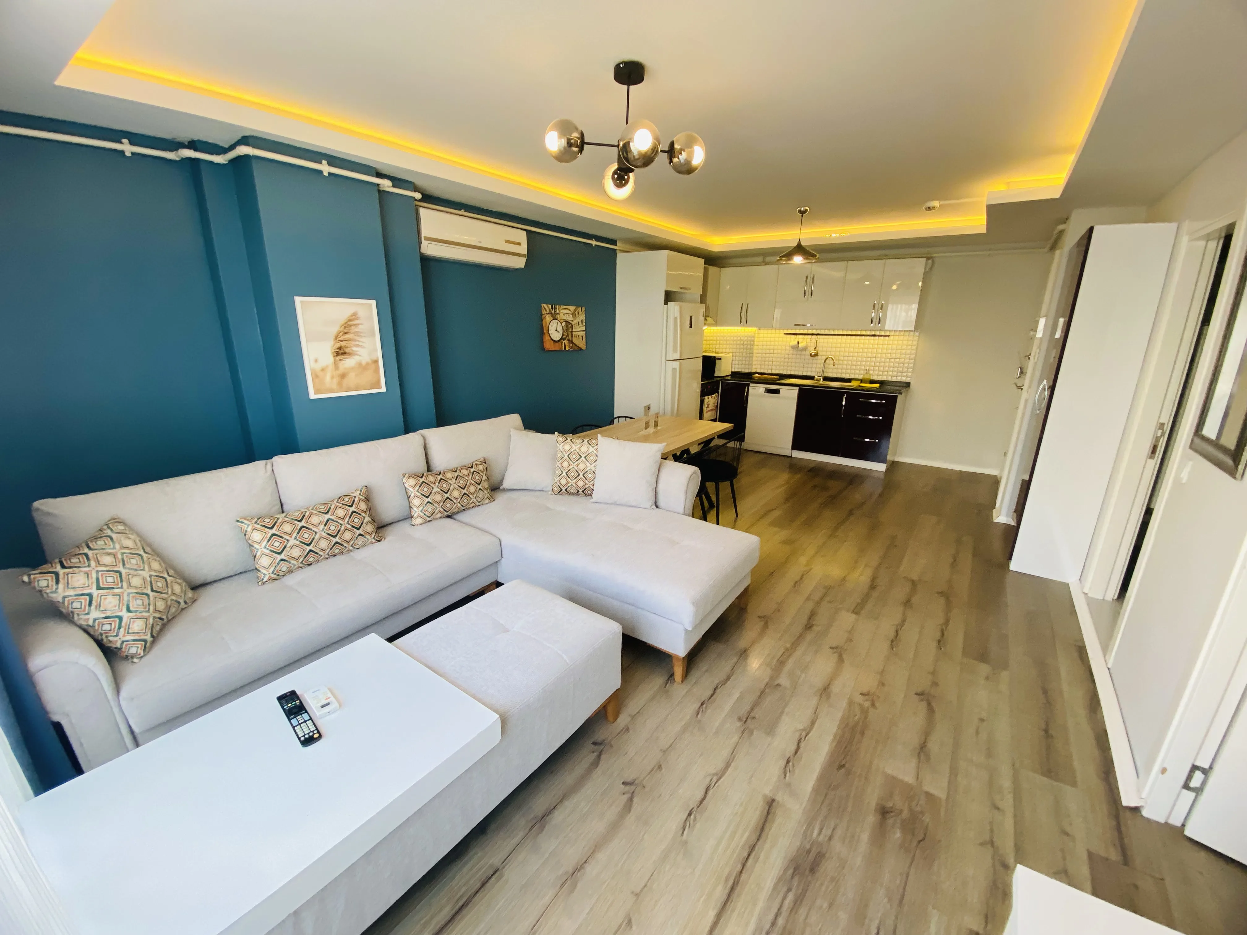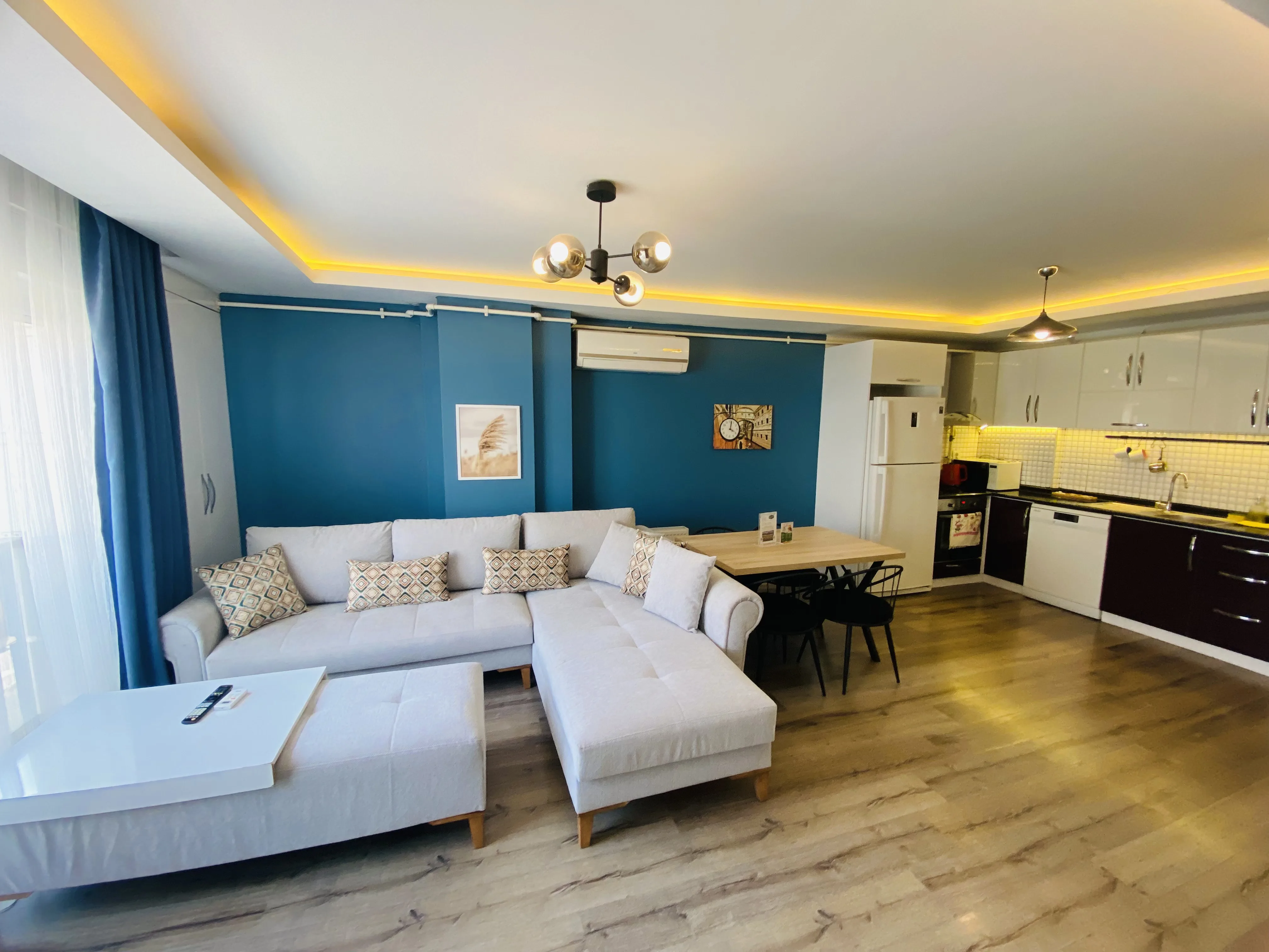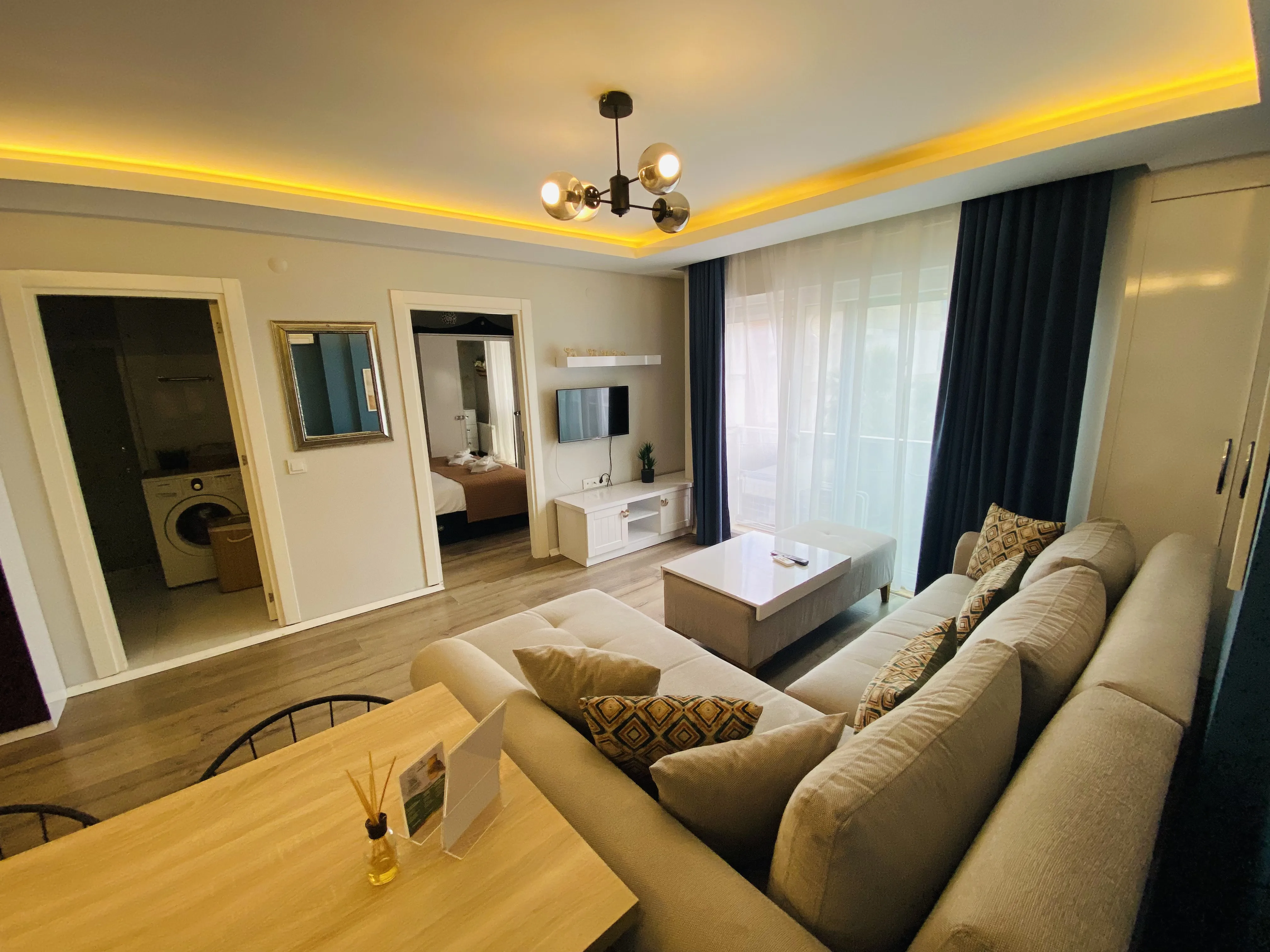 Dairelerimiz ücretsiz wi-fi, klima, doğalgaz, tv, tam donanımlı mutfak, bulaşık - çamaşır makinası, buzdolabı, fırın, mikrodalga, çay/kahve makinası, tost makinası, ütü, kişisel hijyen ürünleri - havlu vb ihtiyaç duyabileceğiniz tüm eşyalara sahiptir.